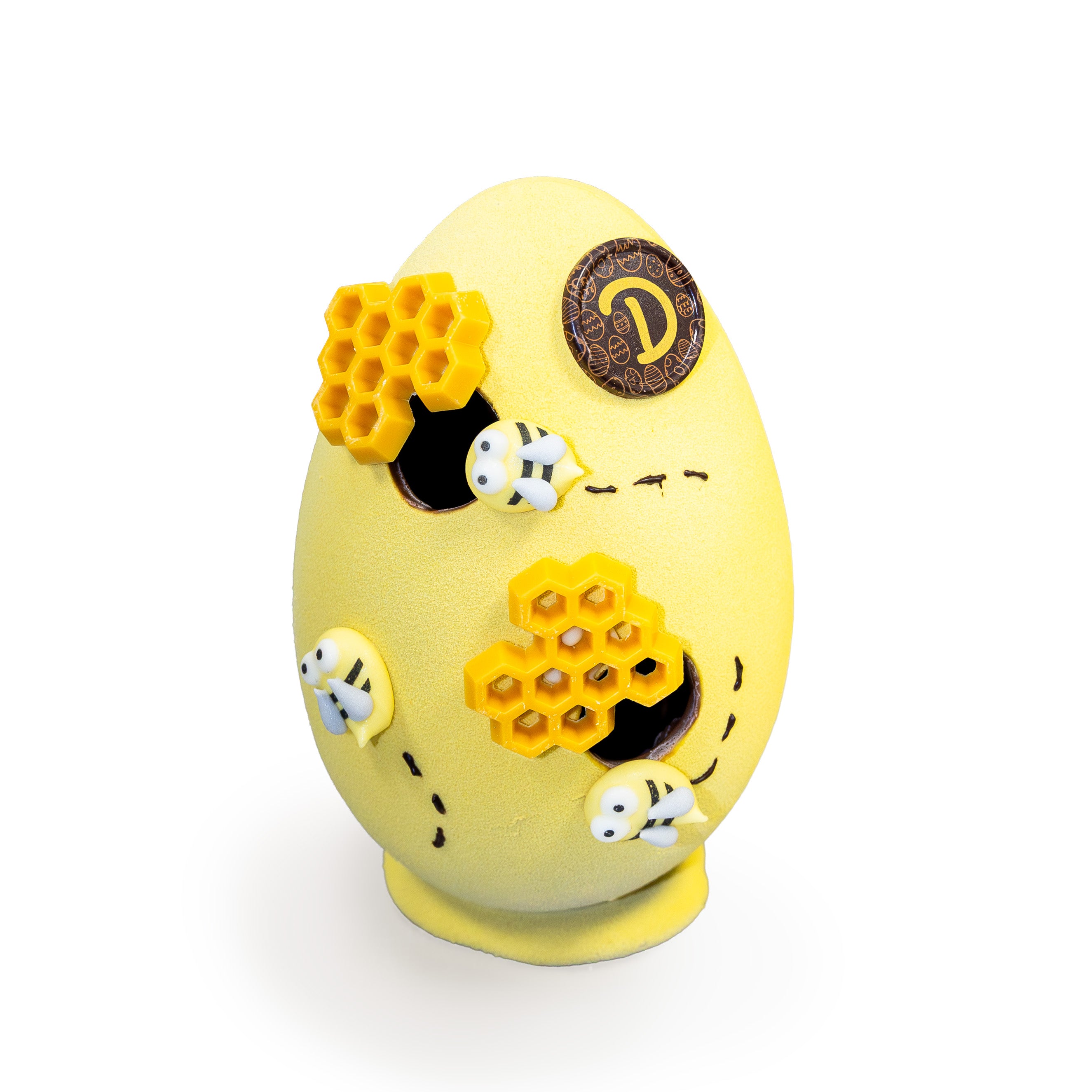 Het ei is gemaakt van romige melkchocolade en bevat binnenin een heerlijke verrassing: vier roomchocolade vogelnestjes. Zo is het paasei niet alleen mooi om te zien, maar ook een echte traktatie om te openen en van te genieten.