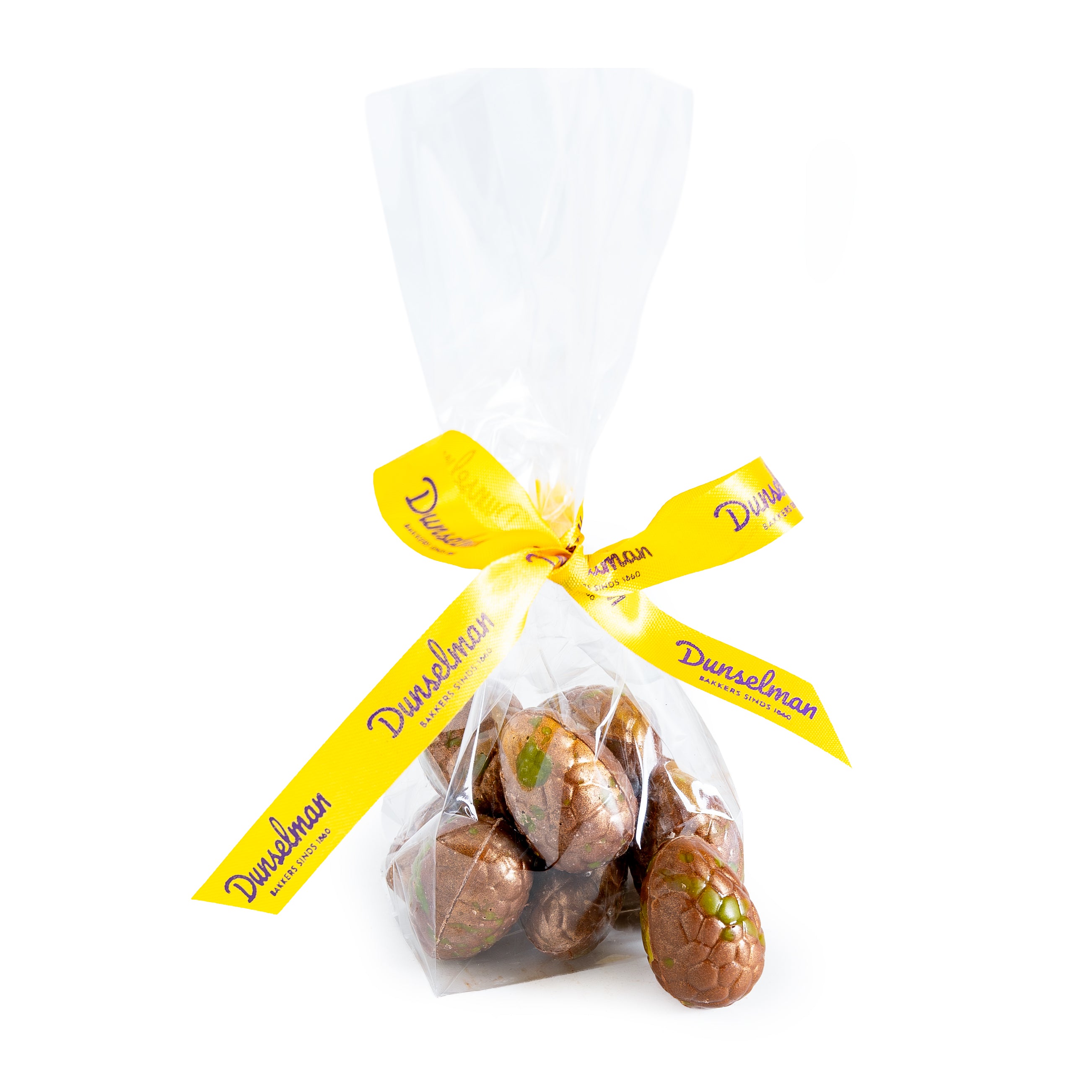 Onze Dubai Paaseitjes zijn een bijzondere paascreatie. Geïnspireerd op de rijke smaken uit het Midden-Oosten combineren deze luxe paaseitjes een romige pistachevulling met knapperige kataifi – fijne, goudgebakken deegdraden die zorgen voor een verrassende crunch.