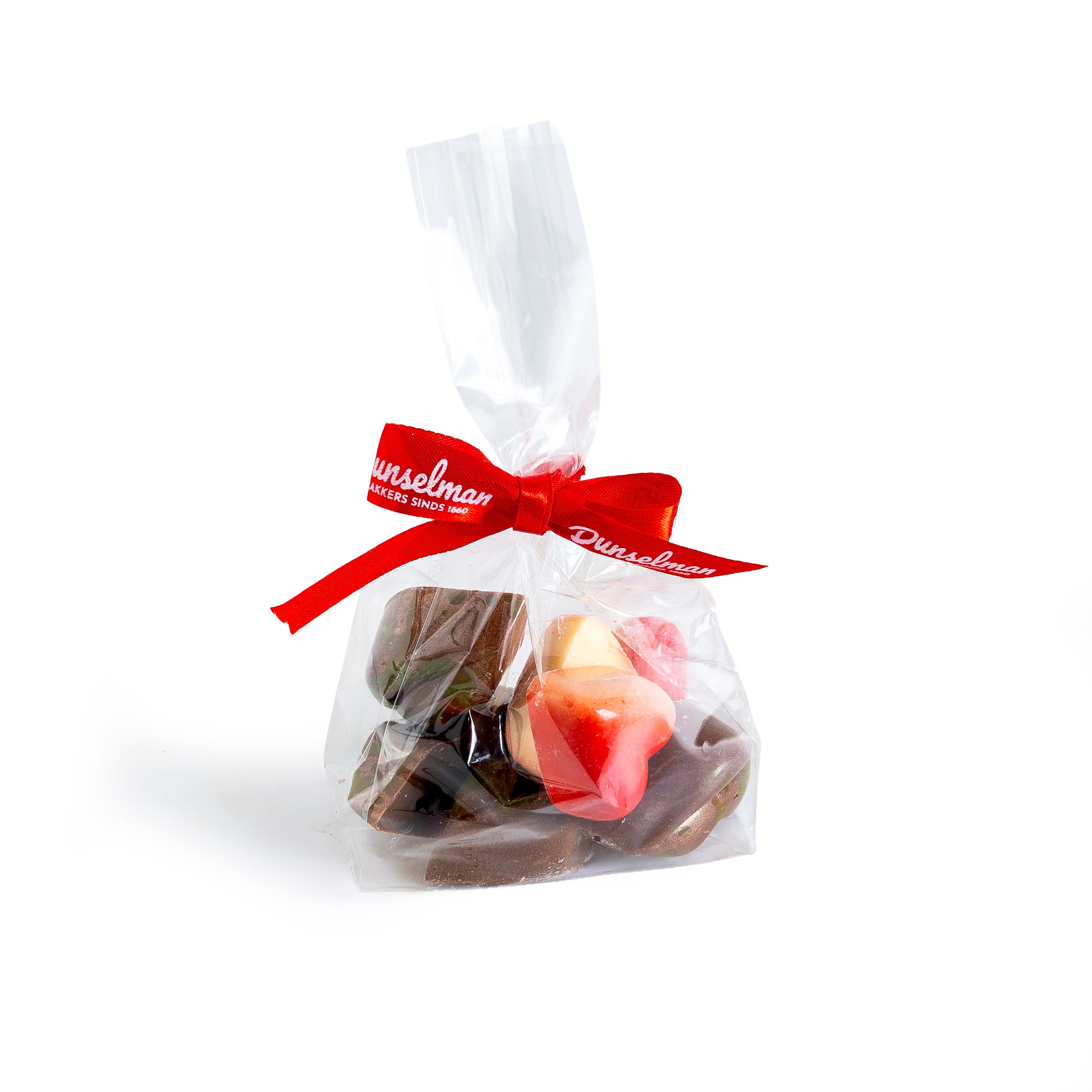 Ons Zakje vol liefde is een klein, liefdevol cadeau vol verfijnde chocolade. In dit zakje vind je dubai pistache chocolade in de vorm van een kusje, gecombineerd met zachte bonbons gevuld met frambozen ganache. Een smaakcombinatie van romig, nootachtig en friszoet, perfect in balans.