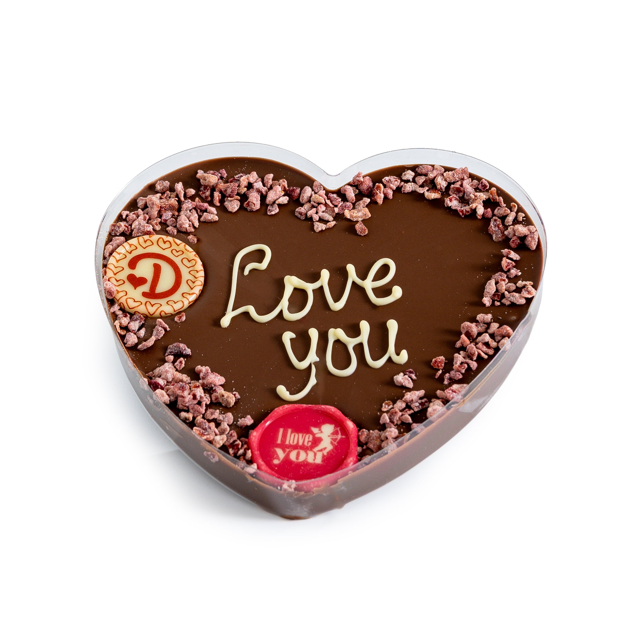 Ons Chocolade Hart is een liefdevolle traktatie, speciaal gemaakt voor Valentijnsdag. Deze gegoten chocolade harten worden vervaardigd van melk- of witte chocolade en zijn met de hand versierd en gegarneerd met een speelse, liefdevolle tekst. Elk hart is uniek en met zorg afgewerkt in onze chocolaterie in Den Helder.